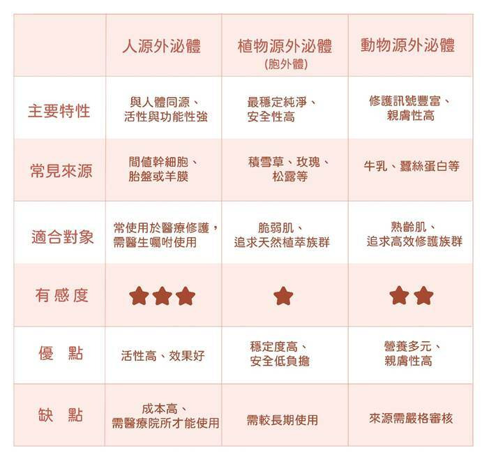 對於剛入門的民眾也可以嘗試從外泌體來源做選擇,